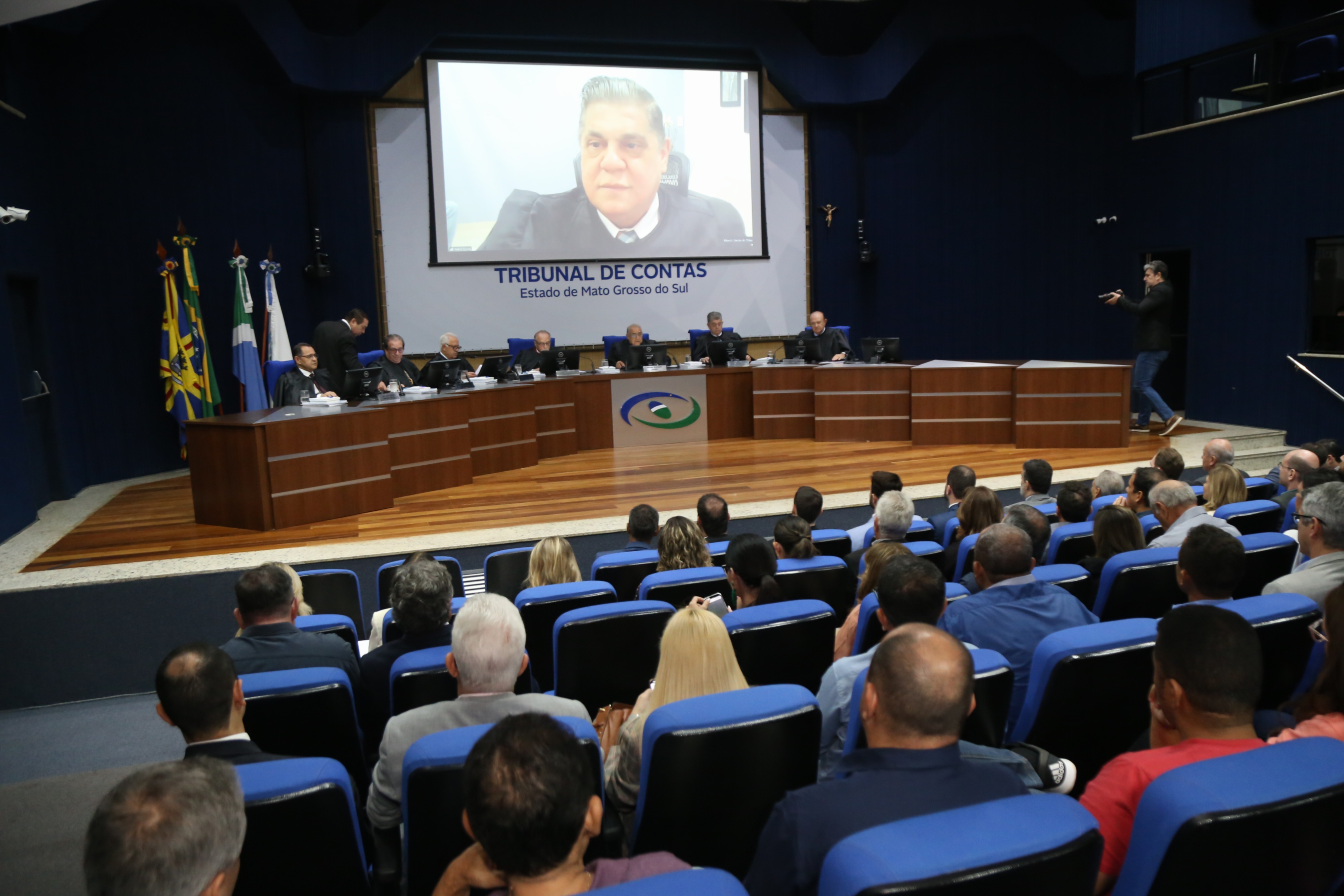 Em reconhecimento à marcante trajetória na Corte de Contas, o presidente do Tribunal de Contas de Mato Grosso do Sul, conselheiro Flávio Kayatt, delegou o comando da Sessão do Pleno, desta quarta-feira, 12 de novembro, ao conselheiro e vice-presidente Jerson Domingos, que se despede da Corte de Contas em razão de sua aposentadoria compulsória.