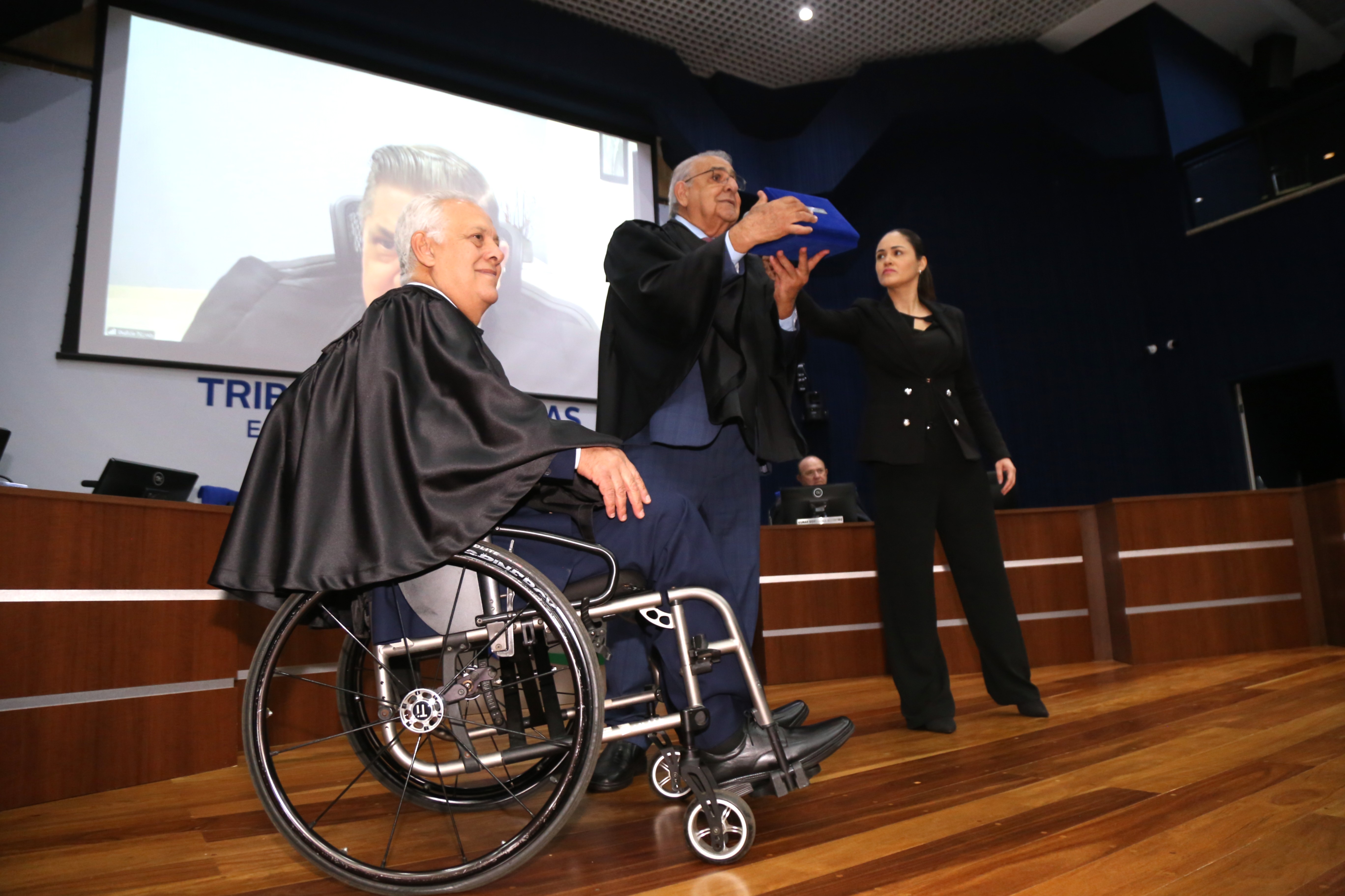 A simbólica homenagem ocorreu durante a 11ª sessão plenária, que contou também com a participação dos conselheiros Iran Coelho das Neves, Osmar Jeronymo e Marcio Monteiro, além do conselheiro substituto Célio Lima de Oliveira e do procurador-geral de contas do Ministério Público de Contas (MPC), João Antônio de Oliveira Martins Junior. O conselheiro Waldir Neves participou de forma virtual.